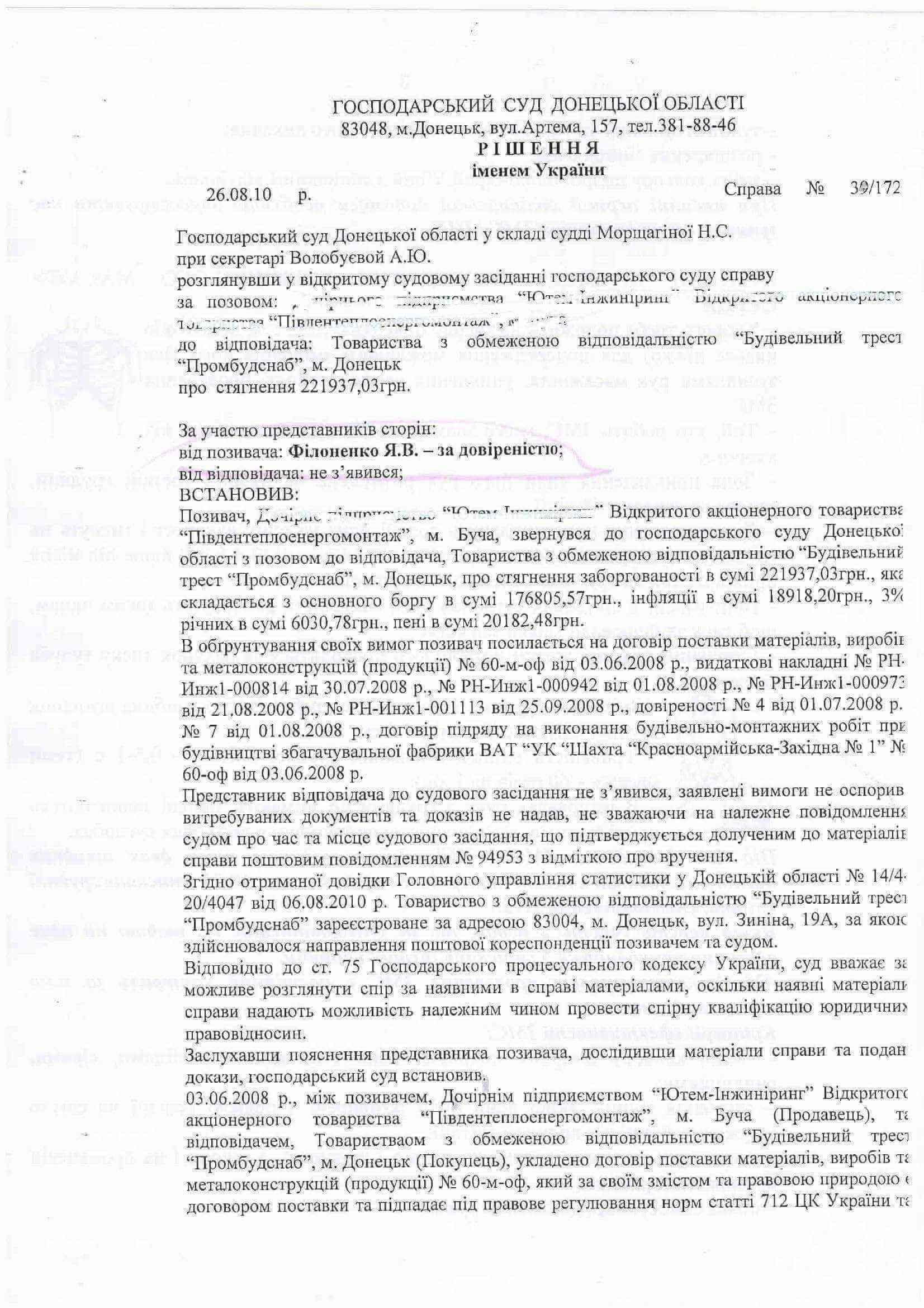 Данным решением суда было взыскано в пользу моего клиента, юридического лица, 245 000грн. Взыскание долга за нарушение обязательств по Договору поставки.